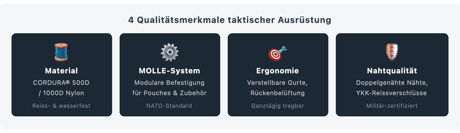 Nicht jede Weste, die militärisch aussieht, hält auch militärischen Anforderungen stand. Echte Qualität in taktischer Ausrüstung lässt sich an wenigen konkreten Merkmalen ablesen: